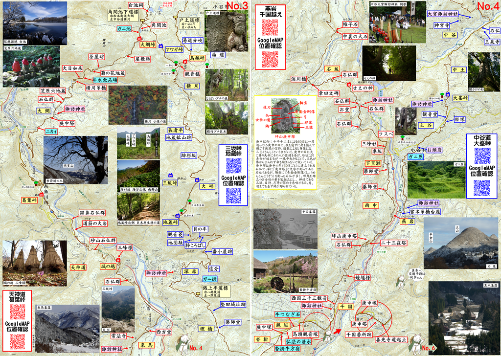 1面にA3サイズ地図が2枚 塩の道3面 草津道1面 石仏の位置が主役の地図です。オリエンテーリングのポイントです。