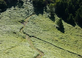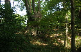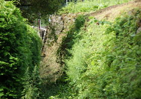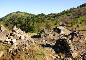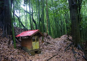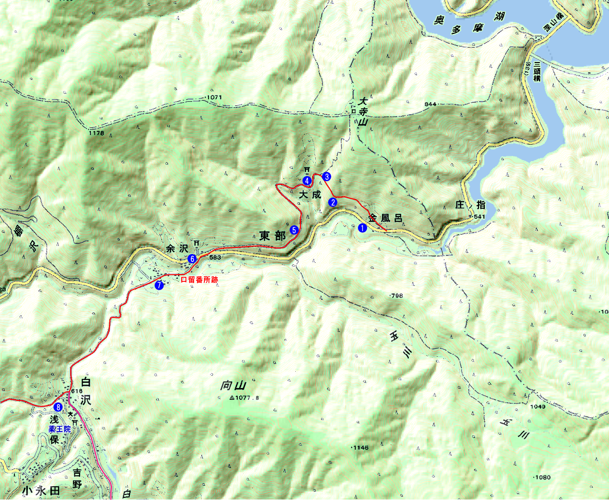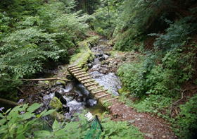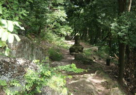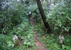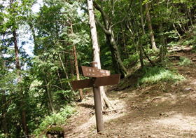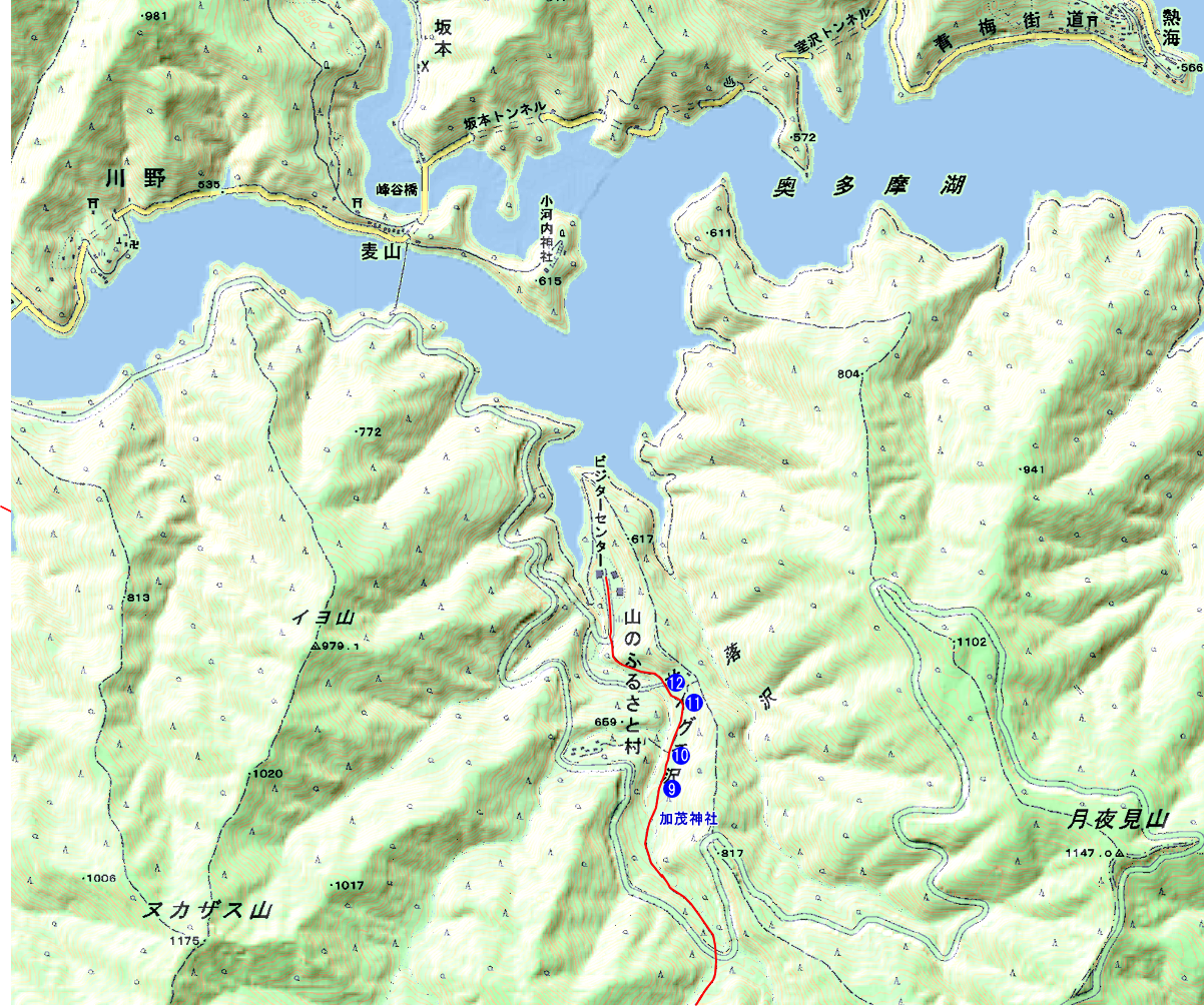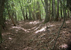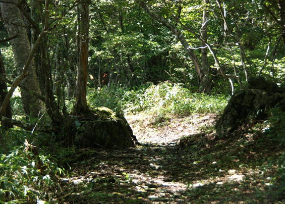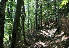 残念なことですが! 鞘口峠を含め、都民の森の中には、古道を偲ばせてくれる遺構はありません。山のふるさと村キャンプ場には、かつて、集落があり、古道が通っていました。