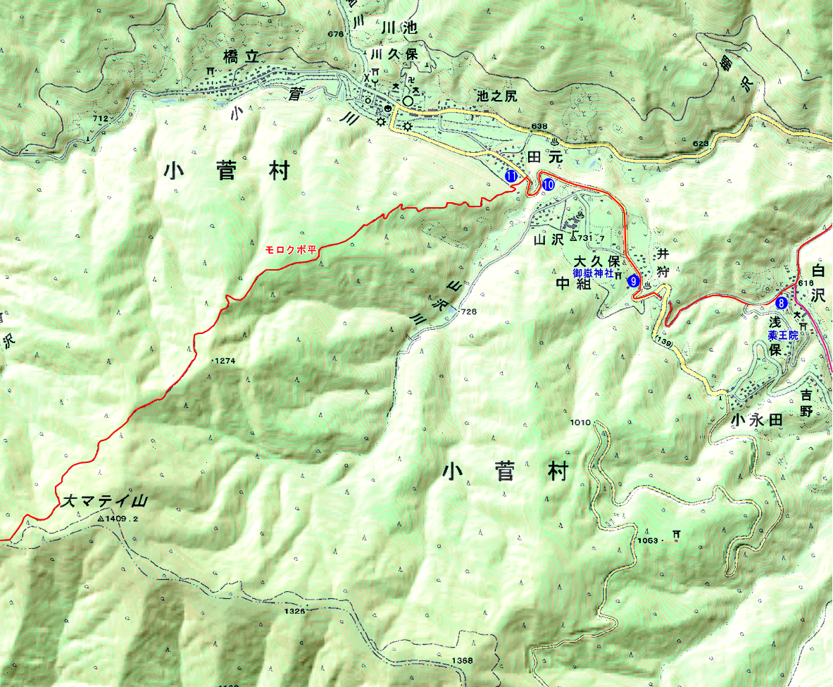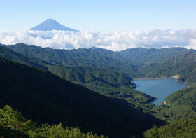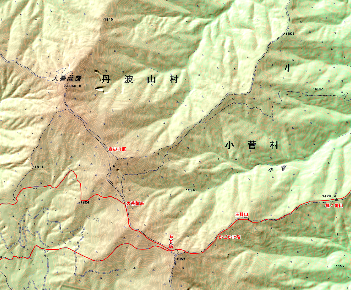 明治初年に、小菅村により小菅川~現大菩薩峠の道が開設されました。「古甲州道」が盛んに歩かれていた当時は、大菩薩峠は石丸峠を指していました。しかし、現在の石丸峠~上日川峠の登山道は急勾配で古道の道筋と推定するには難があり断念しました。学生時代 辞書で、「峠」を検索したら「道と道との出合い」となっていました。石丸峠を大菩薩峠方向へ登ったところから見下ろすと、まさに「峠」です。