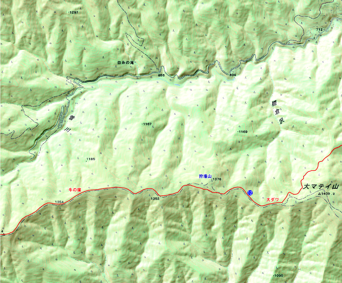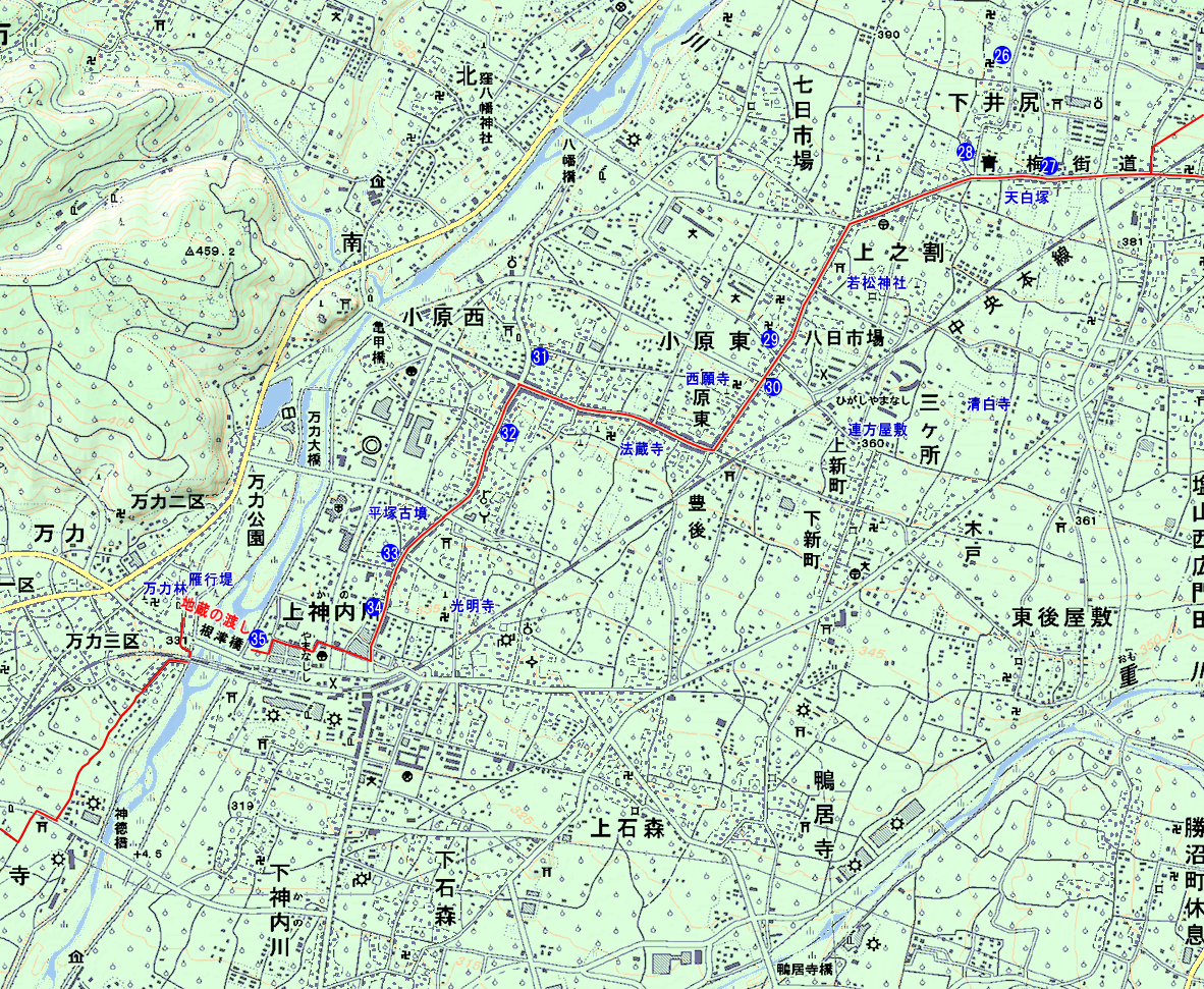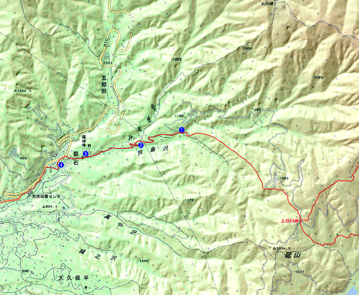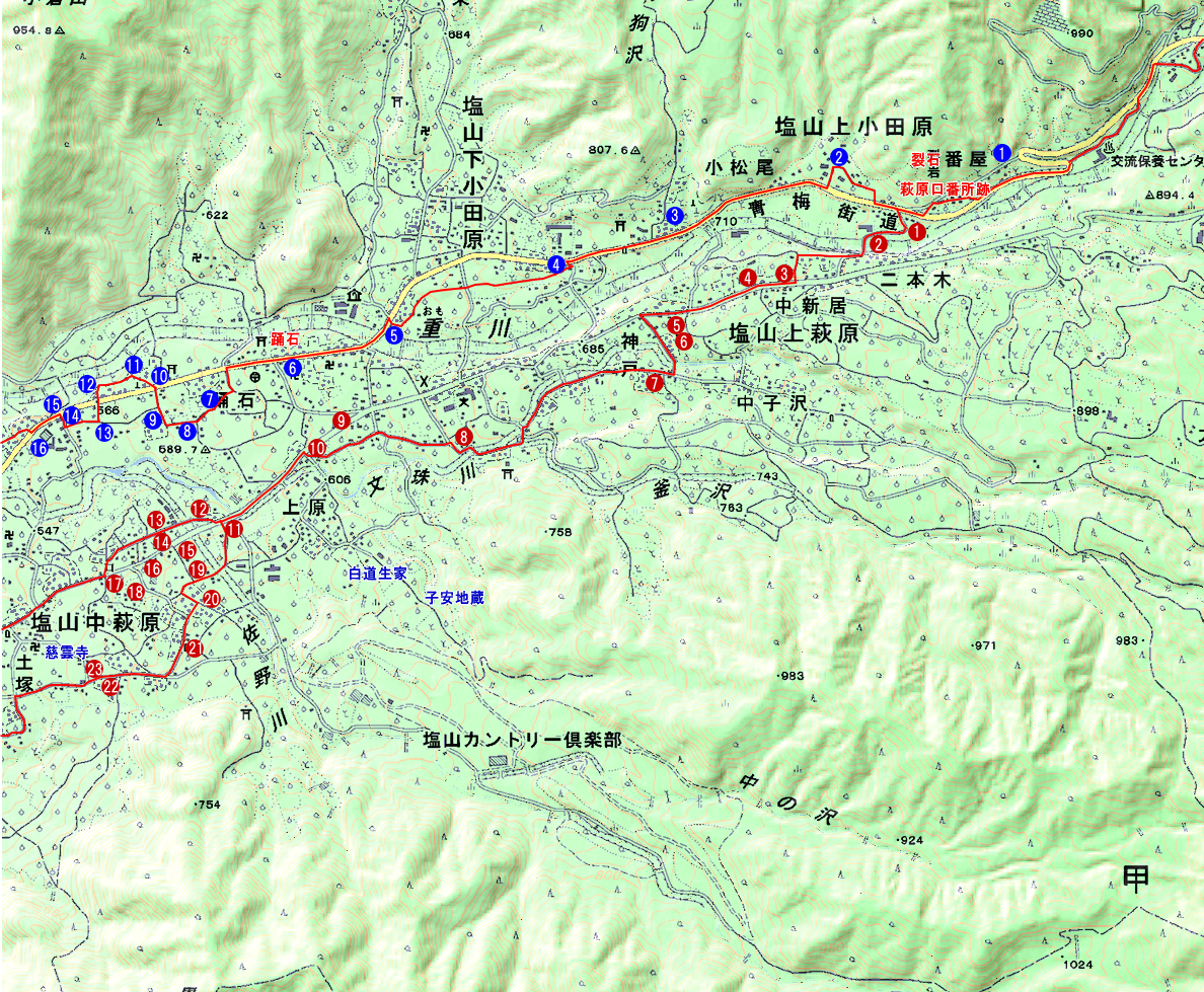 裂石~酒折の道筋は、青梅街道と同様としました。青梅街道として盛んに利用されたのは、JR青梅線白丸駅近くの「数馬の切通し」が元禄年間(1703年)に開通してからです。