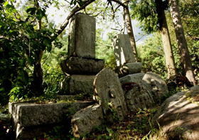 八王子城は同年6月に、豊臣秀吉の軍勢に、上杉景勝、前田利家、真田昌幸の軍勢を加え1万5千の軍勢に攻められ、1日して1000人以上の死者を出し、落城。城主の北条氏照以下家臣は小田原本城に駆けつけており不在であり、城代の横地監物は僧呂などを連れ落城前檜原城へと脱出しました。一方、檜原城においても、城主の平山氏重らが北条方として戦っていた。監物は、武士以外の村民のためにも、無益な戦いを中止させるべきと説きました。そして、檜原城に、小田原城落城と、北条氏照、氏康の死の知らせが届き、戦う意義さえ無くなり、小田原城落城の日を檜原城落城とした。その後、監物は、小河内にて、切腹したと伝えられています。