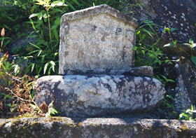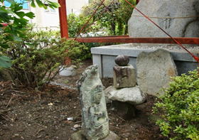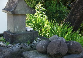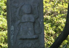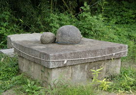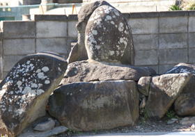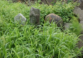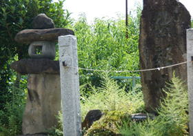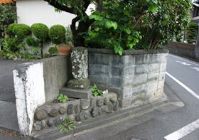 御前石(峠) 古甲州道と鎌倉街道が重複しています。従来は石を「御前石」と言いましたが「御前石」は地名となり、石は「駒繋石」と言われるようになりました。「御前」とは、古代においては、貴人、貴族を、中世、近世では、大名、高禄者などの高貴な人物を指す敬称で、ここの「御前」は、剛勇廉直の鎌倉武士と名高い、畠山重忠への尊敬の意から「御前石」と呼ばれました。また、重忠が駒を繋いで休んだ石との言い伝えがあります。