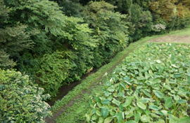 従来は三屋地区の北側を多摩川は流れていましたが、洪水によって、南へと流路が移り、両地区は、多摩川により分断されました。「三屋」という地名は、「散屋」から由来しているとも云われています。