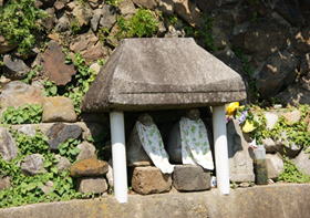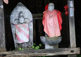 雲峰寺百体観音 青梅街道が柳沢峠越えへと変わる以前は、千石地蔵を起点として、大菩薩峠を越えて、荷渡し小屋まで、荷を運ぶ人の安全を見守っていました。「弘化三年高遠石工の作」