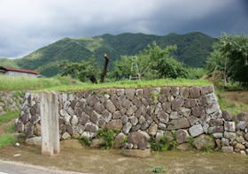 雁行堤 万力林 竜王・近津とともに甲斐の水難所でした。天正十一年の洪水は甲府城下まで達しました。武田氏は治水には力を注いでおり、植林をし伐採を禁止しました(万力林)。 雁行堤は、甲州流河防法で、天正十一年の大洪水の後、高さ5.45m 長さ約32mの3基が構築されました。現在二基が残っています。 雁行とは、信玄の軍(いくさ)の陣営に「雁行」の陣(1陣が敗れても、2陣、3陣と敵にあたることができる)から由来しています。
