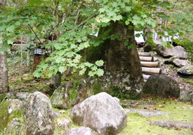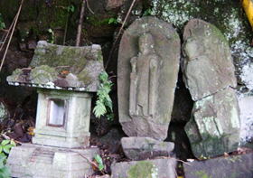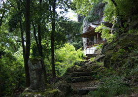 裂 石 雲峰寺を開山した日本の歴史上初めて朝廷から大僧正の位を送られた僧行基(668~749年)が、巨石が裂けて、そこから出現した萩の巨木に、三体の十一面観音を彫り、三ヶ所の村へ分祀し、それぞれが 上萩原・中萩原・下萩原となったと伝わっています。