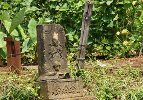 軍道(荷田子) 山崩れ、地滑りのことを、「山が行く」というが、「クエル」ともいい、このようにして出来たところを「崩所」(クエド)という。この「クエド」が延音されて「クエドウ」となり、「軍道」と標記するようになった。滑り落ちた所が下軍道、残った上の方が上軍道である。