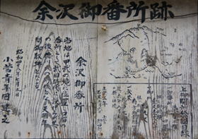 檜原村口留番所 徳川家光が元和九年七月、甲斐からの侵入の警備のため設けました。幕府が監視のために設けた施設は、53ヶ所あり、重要度の高いものを「関所」(20ヶ所)他を番所としました。地形上からどうしてもここを通らないと通行できないことから「口元」をおさえるという意で「口留番所」と呼ばれ、大政を奉還した慶応三年までの245年間置かれました。口留番所近くの、「橘橋」は、江戸時代には、公儀御普請(ふしん)橋でした。ここの秋川越えは、古甲州道の難所のひとつでもあり、檜原城にとっては、自然の要害でもありました。 御普請とは、江戸時代、幕府や藩が施工した土木工事のことです。 |