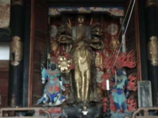 | 玉泉寺では、1日2回、鐘が突かれています。11:30/15回と夕方/9回です。夕方の鐘は6月~18時 10月~17時です。従来は12時に突くのが普通なのですが30分早く鐘を突くことにより、正午には家に帰れる配慮だそうです。また、突く回数ですが、12時は12+3で15回、18時は6+3で9回、+3回は捨て鐘と言い、余裕を持たせる意味だそうです。歩かれる方は、11:30になりましたら、是非お聞きください。山里に響く鐘の音は、大町峰街道の一番のおすすめです。 | 玉泉寺山門 ご本尊薬師如来像 松代藩より寄贈された籠 六地蔵 |