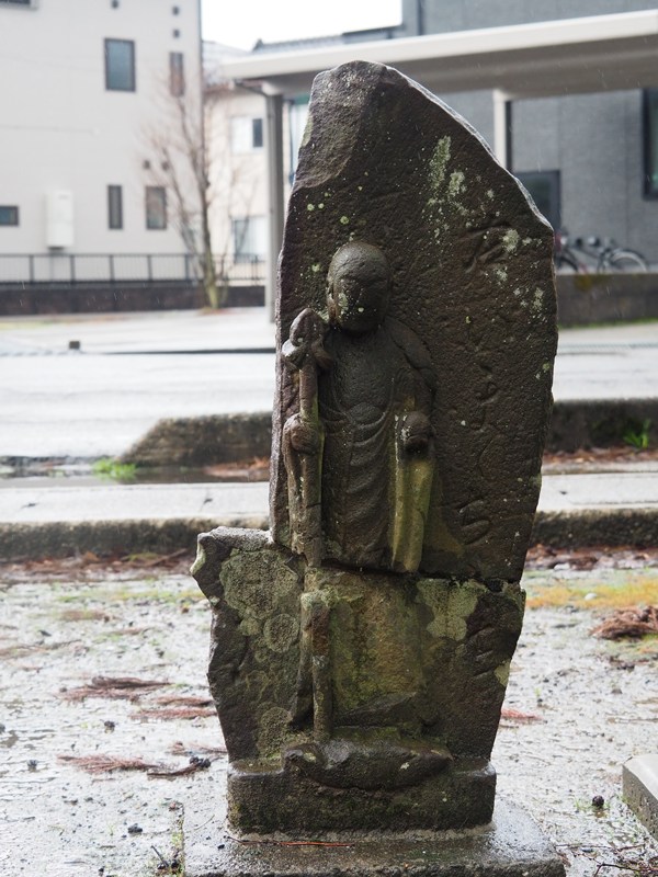 本町七丁目交差点から宇賀魂神社境内に移設 北国街道追分は「北国街道」の終点ですが、佐渡の金銀を運ぶ街道として重要度が増し出雲崎まで延長され奥州道とも呼ばれていました。「加賀街道」の始点。