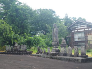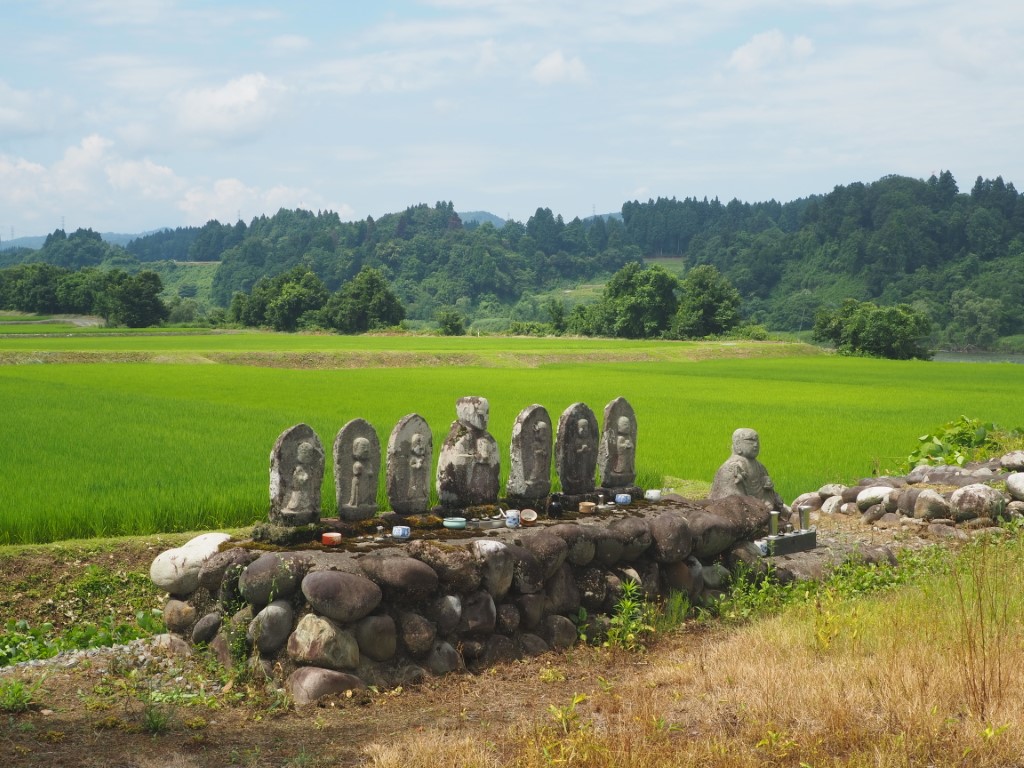 谷街道/北国脇街道 越後小千谷から信州へと向かう道で、千曲川/信濃川の左岸右岸に沿って東通り、西通りがあり途中の渡しにより両岸の道を補完する形になっている信州善光寺または稲荷山(北国脇街道 塩尻~善光寺と分岐点)へと向かう道の総称である。名称としては谷街道・市川通り(街道)・善光寺通り(街道)・飯山通り(街道)・信州通り(街道)・北国脇往還(街道)・北国下往還・北国東往還 等であり、信濃川の右岸 東通り 左岸 西通りなどがある。また千曲川増水時の逃げ道、江戸への大笹街道の裏道として利用された、道も掲載した。写真は西大滝六地蔵 平成23年3月12日長野県北部地震により被災した栄村の復興を願って住人が栄村に祈りが届くように向きを変更した。