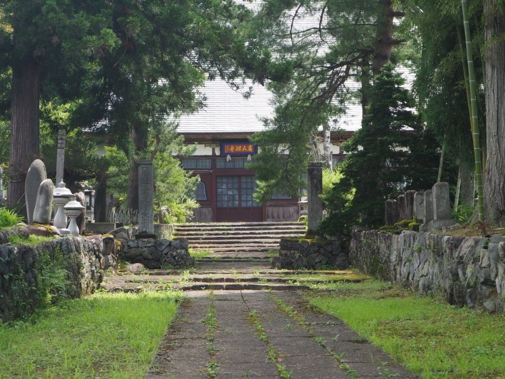 福島宿馬頭観音道標にて松代街道/北国街道に合流 善光寺へは布野の渡しにて千曲川を渡った