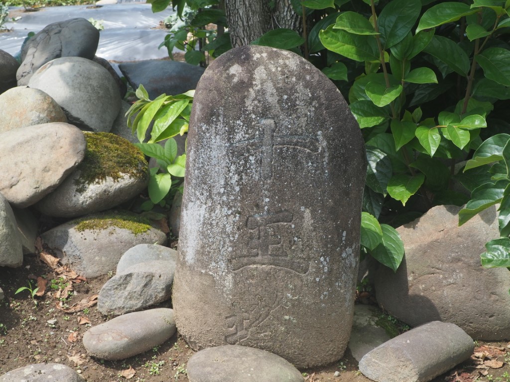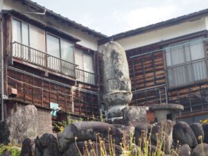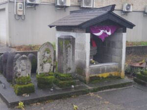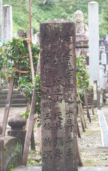 芋坂道標にて 谷街道は西通りと東通りが分岐した