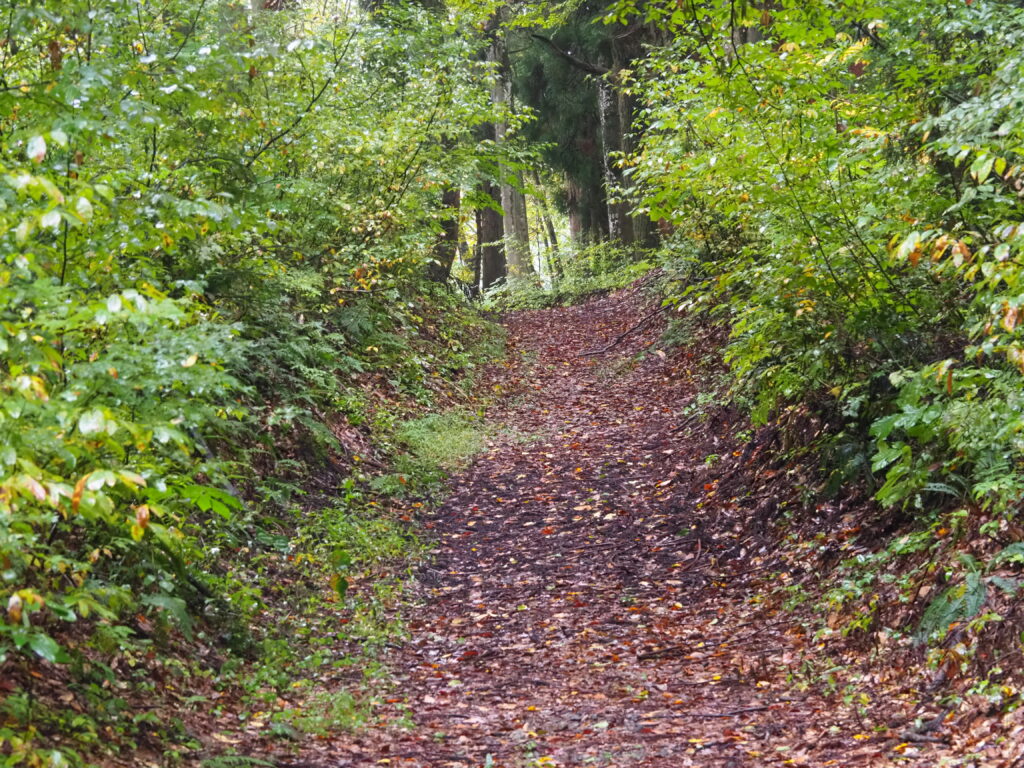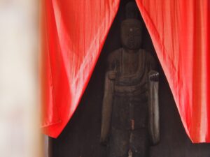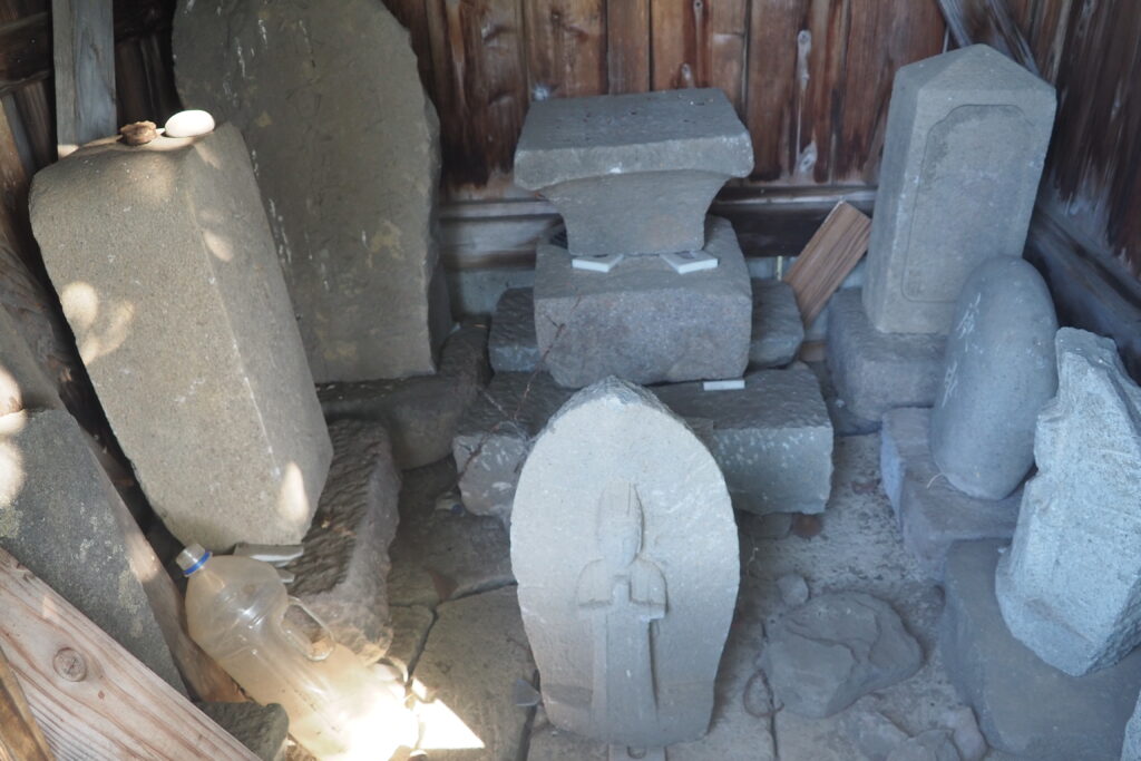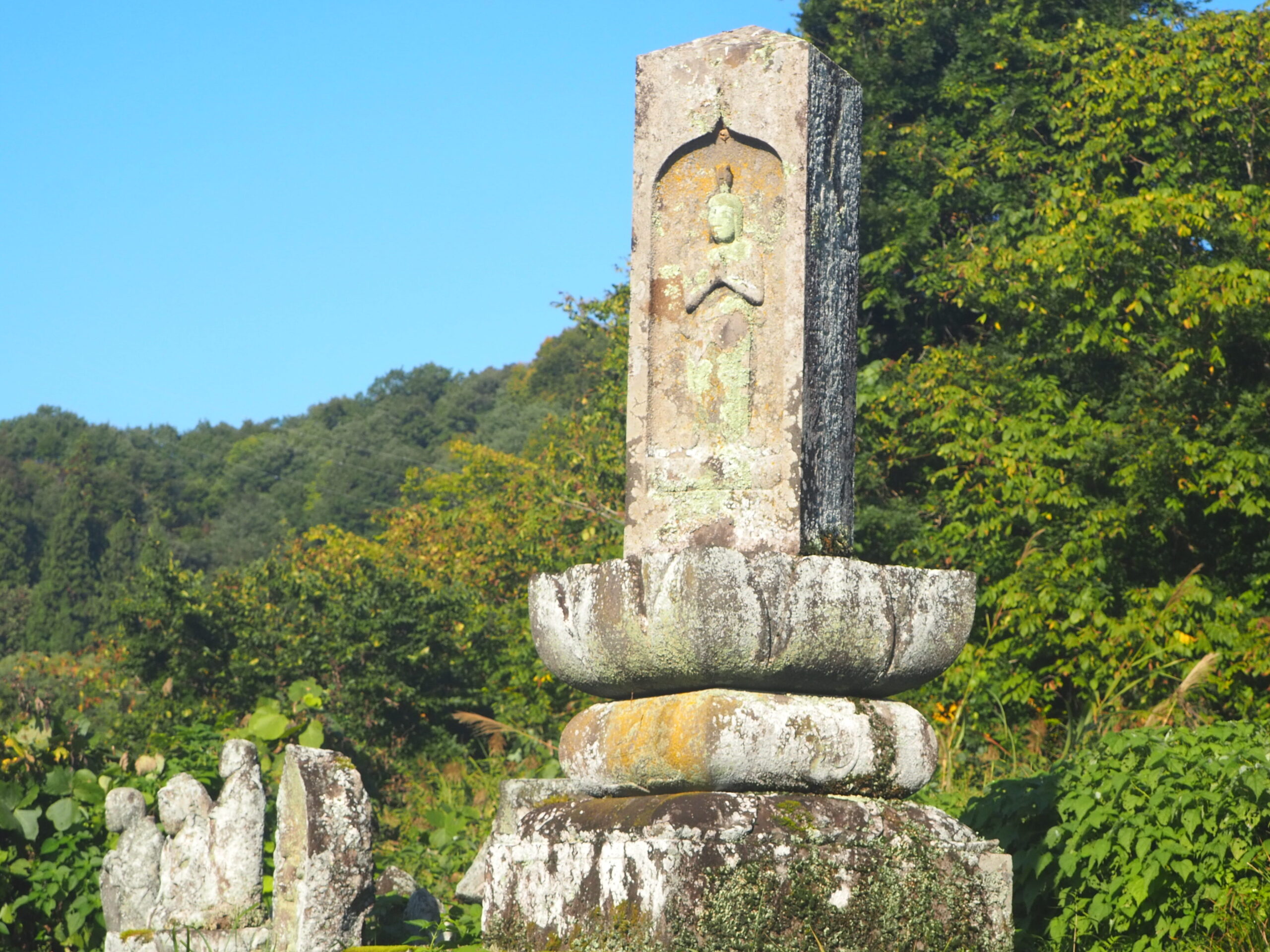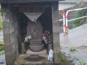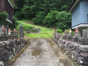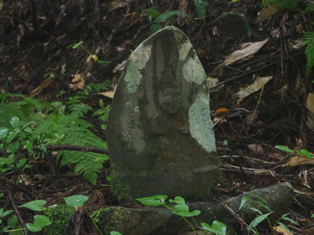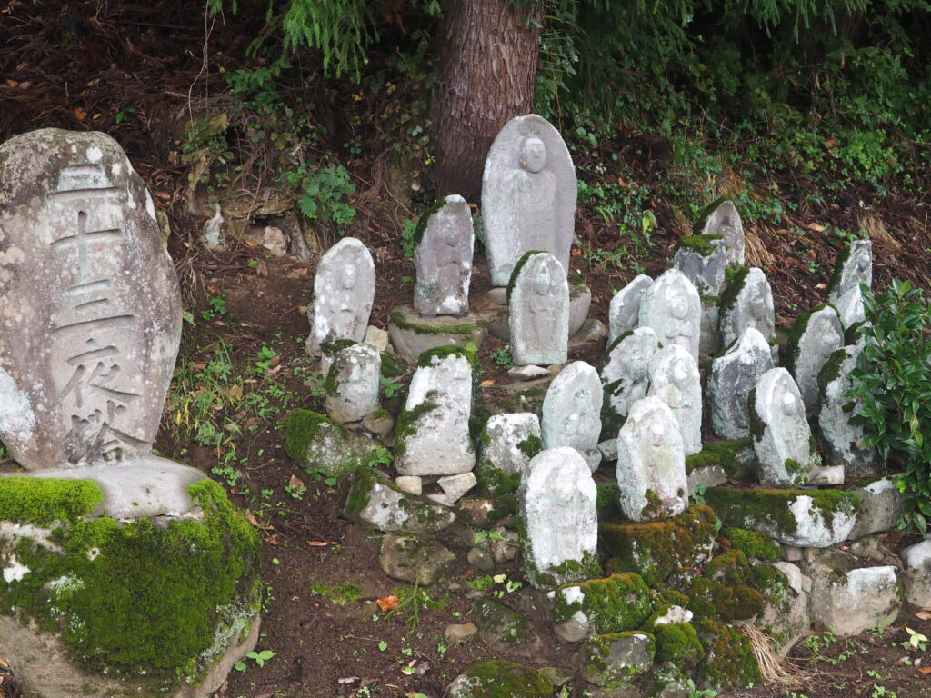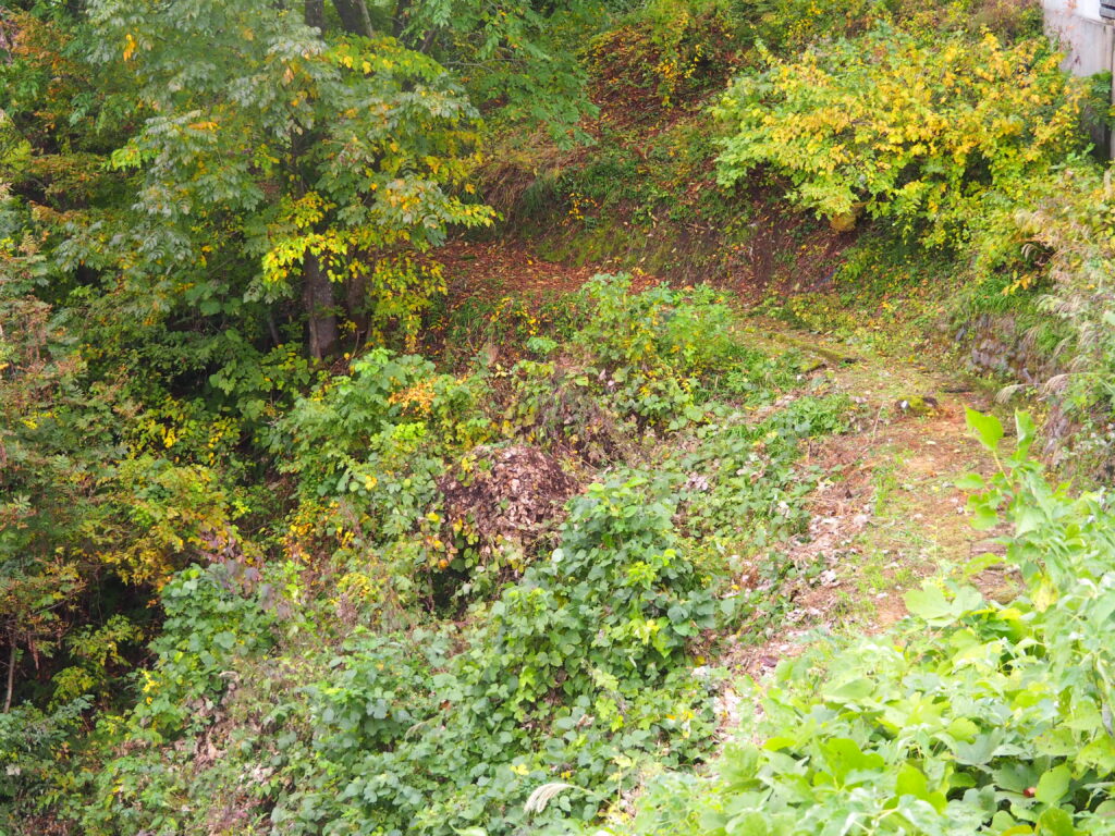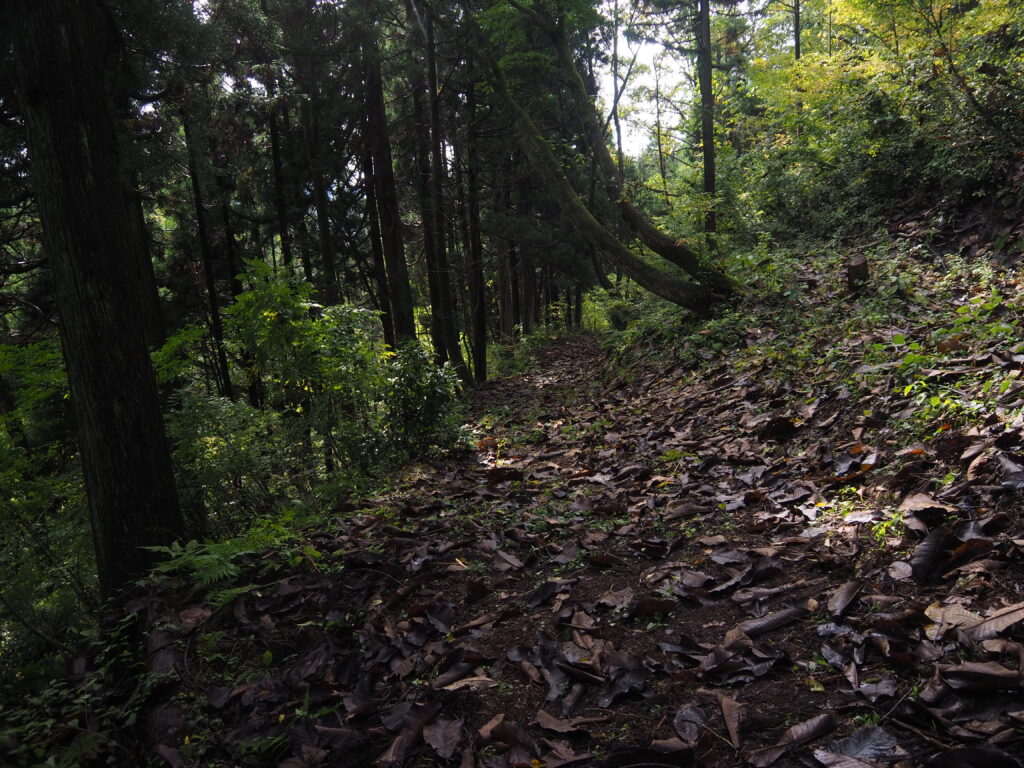 指差し善光寺地蔵様道標より「善光寺街道」と地元にて呼ばれている土の古道が始まる。ここより標高差250mの急勾配の斜面に段差がひとつもない幅広い土の道が古道として遺る。谷街道の中では、一番歩いていただきたい古道です。