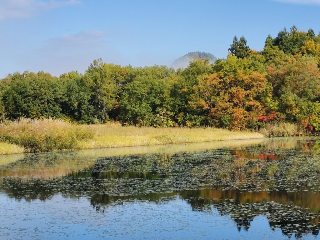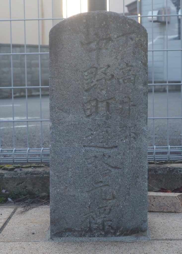 江部道標にて、中野宿経由も道と飯山へ向かう道が分岐し、新井にて再び合流する。
