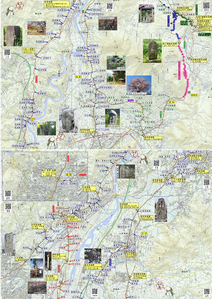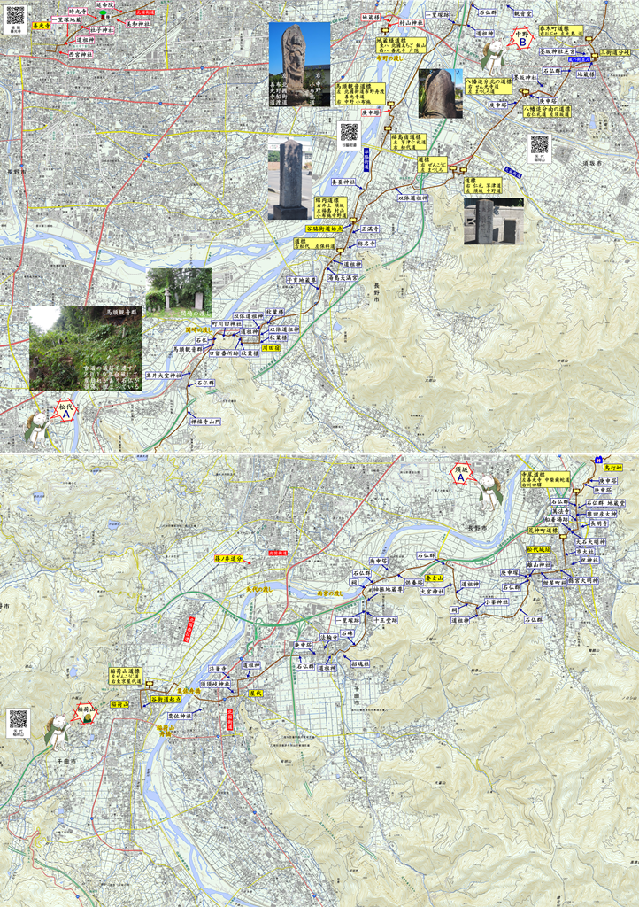 福島宿馬頭観音道標にて松代街道/北国街道に合流 善光寺へは布野の渡しにて千曲川を渡った